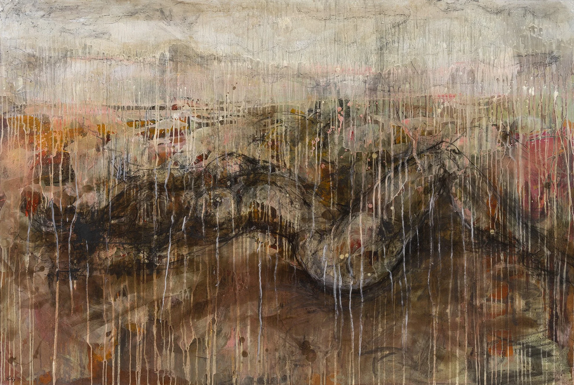 human and the natural are bound in an endless loop. The artist suggests that The Cloud descended has to do with “the destruction of