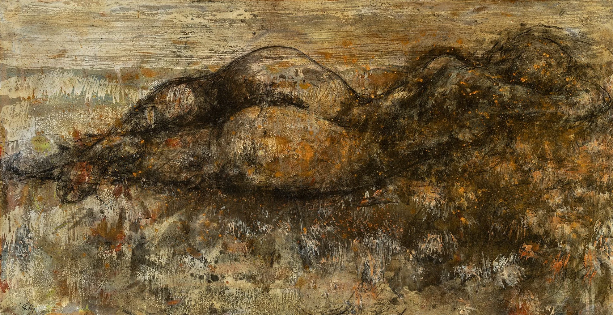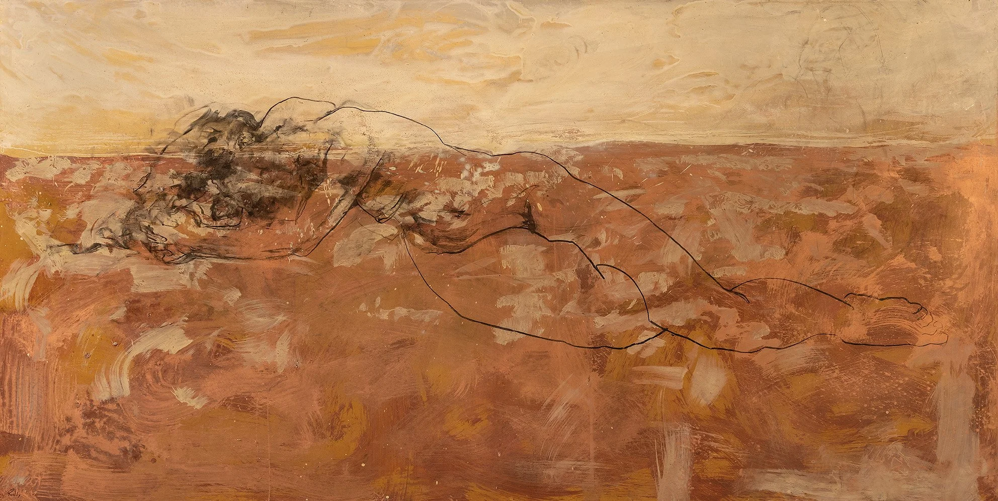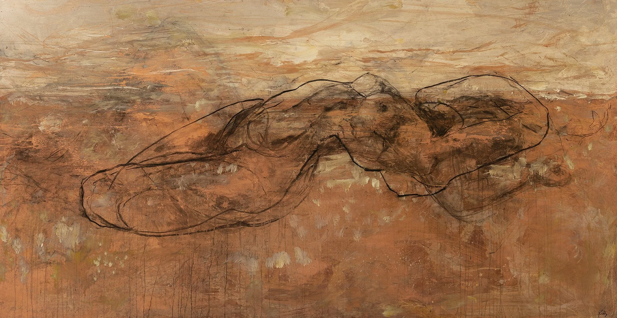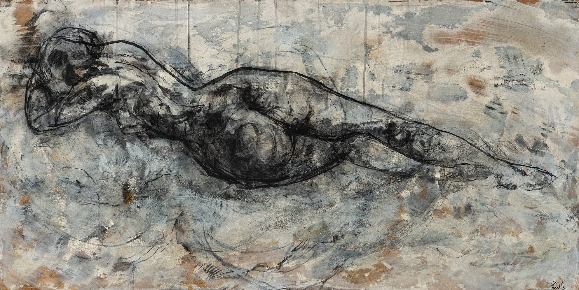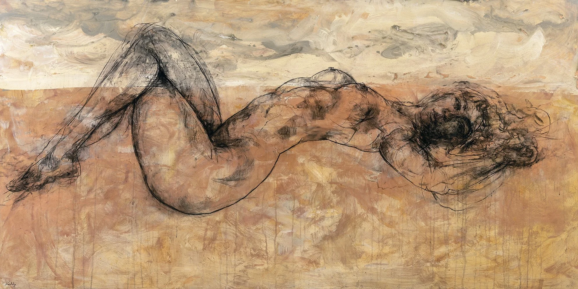 beauty of the female form arcs across the surface of the paintings, a vision in which body becomes horizon, and vice versa. The