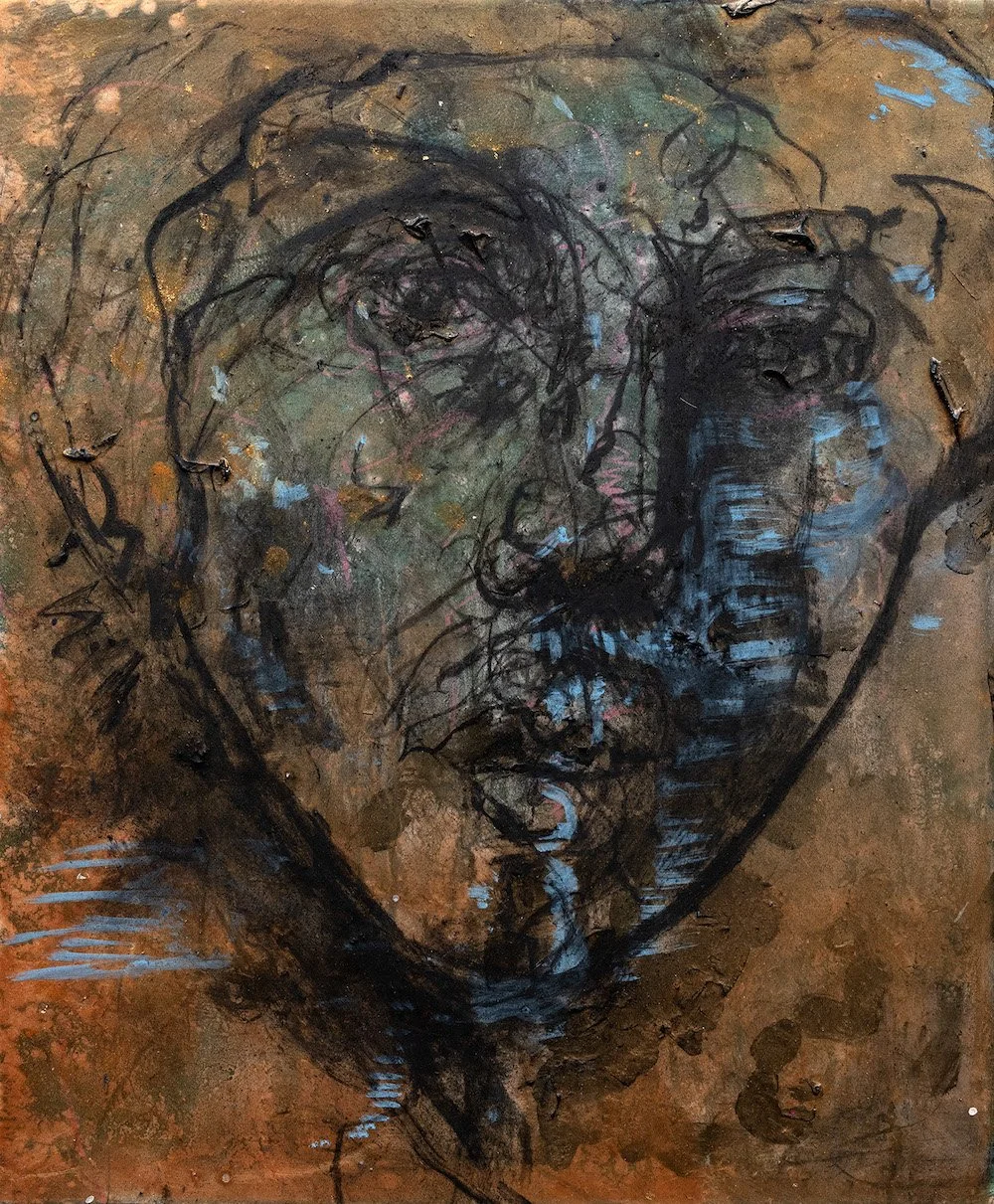 one particularly moving image from the series, a charcoal figure appears to be burying its head in despair. Her fingers though